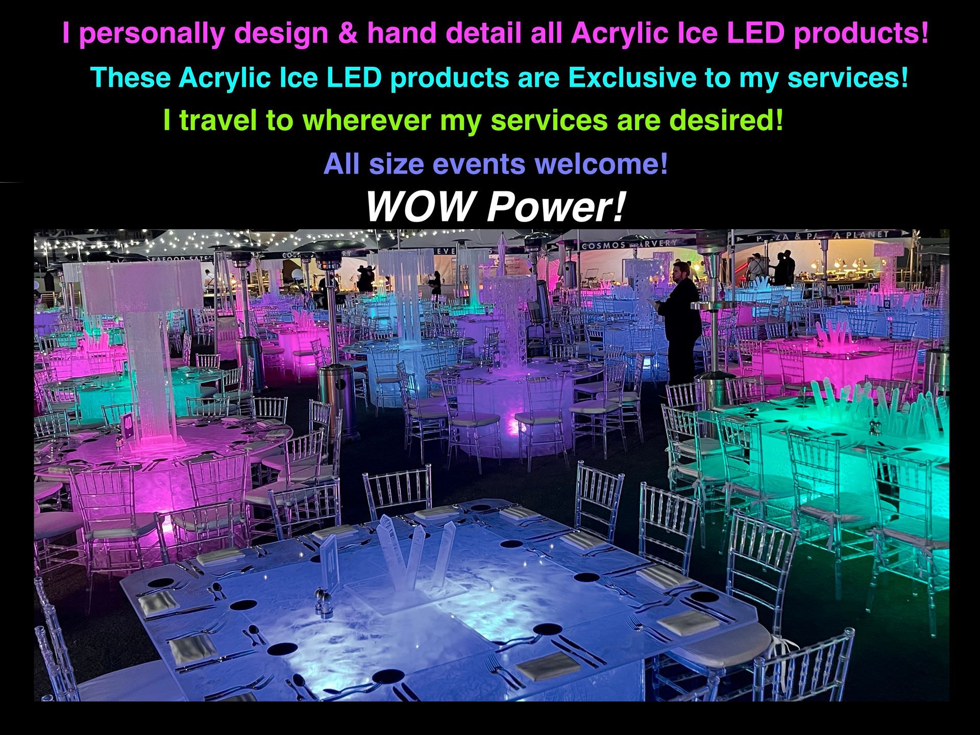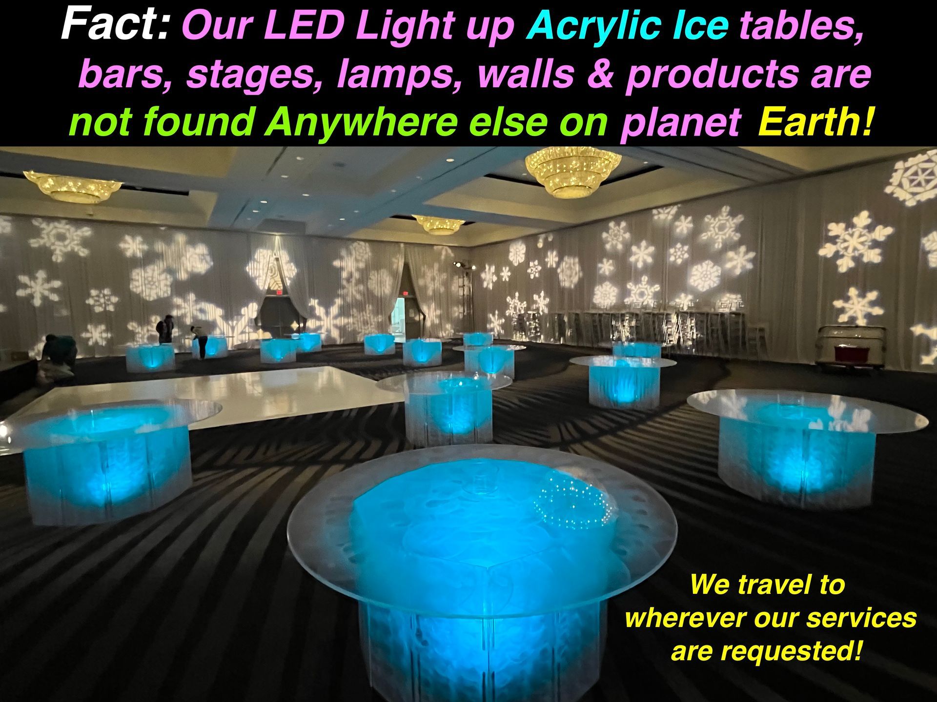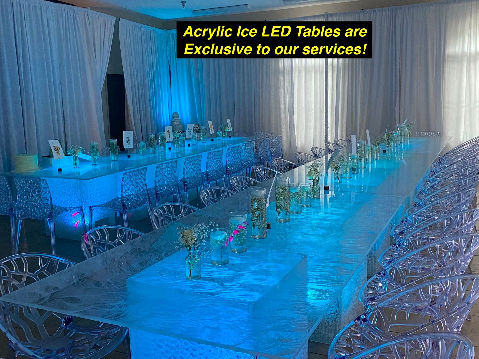 All Acrylic Ice LED Tables, Bars & LED products ARE Exclusive to our service