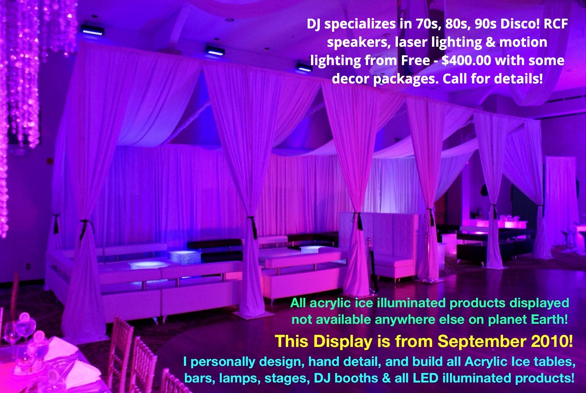 Available Products: LED Table rentals, installations & Free Party Decor planning. Lighted Table rentals, installations & Free Party Decor planning. Light Up Table rentals & Party Decor planning. Glow Table rentals, installations & Free Wedding Decor planning. Illuminated Table rental, installations & Free Event Decor planning. LED Bar rentals, installations & free Party Decor planning. Lighted Bar rentals, installations & Free party Decor planning. Light Up Bar rentals, installations & Free Party Decor planning. Glow Bar rentals, installations & Free Decor planning. Illuminated Bar rentals, installations & Free Decor planning. LED Cocktail Table rentals, installations & Free Decor planning. Lighted Cocktail Table rentals, installations & Free event Decor planning. Light up Cocktail Tables, installations & Free Event Decor planning. Glow Cocktail Table rentals, installations & Free Decor planning. LED Highboy Table rentals. Glow LED illuminated High Top Table rentals, installations & Free Decor planning. LED Coffee Table rentals, Installations & Free Decor planning. Party table rentals, installations & Free Decor planning. Lighted Coffee Table rentals. Light Up Coffee Table rentals. Glow Coffee Table rentals. Stage & Staging rentals, installations & Free Event Decor planning. LED Stage & Staging rentals, installations & Free Decor Event planning. Lighted Stage & Staging rentals, installations & Free Decor party planning. Light Up Stage & Staging rentals, installations & Free Event Decor planning. Glow Stage & Staging rentals. DJ Booth rentals. LED DJ Booth rentals. Lighted DJ Booth rentals.Light up DJ Booth rentals. Lighted LED Lighted Catwalk rentals. LED Lighted Fashion Show Runway rental. Light up Glow LED Column rentals. LED Furniture rentals. Lighted Furniture rentals, installations & Free Decor event planning. Light Up Furniture rentals, installations & Free party Decor planning. Glow Furniture rentals, installations & Free Decor planning. Event Furniture Rentals, installations & Free Decor planning. Party Furniture rentals. Wedding Furniture rentals. Lounge Furniture Rentals. 4' tall Lighted LED Acrylic Ice Lamp rentals. Holiday party rentals. Christmas party rentals. Office Party rentals. Convention rentals. Outdoor Party rentals & Free planning. Party rentals, installations & Free Decor planning. Wedding rentals. Event rentals. Graduation party rentals. Sweet 16 party rentals. Bar Mitzvah rentals. Bat Mitzvah rentals.Event Truss Lighting. Stage Style LED Dance Floors. White Acrylic Dance Floor. feather centerpieces. Wedding, Party & Event centerpiece rentals. LED rental centerpieces. Lighted centerpiece rentals. 6' Tall Chandelier Centerpieces. South Beach Chairs. Pipe and Drape & MORE!