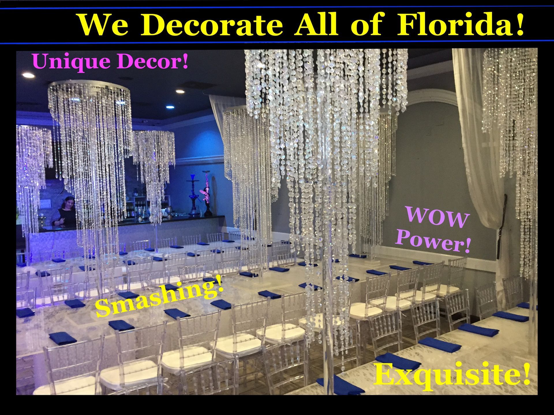 We decorate & rentals for Orlando. We deliver rentals to Kissimmee. We decorate Disney Hotels. We decorate Disney events & Conventions. We deliver to Lake Buena Vista. We deliver to Cocoa. We deliver to Cocoa Beach. We deliver to Melbourne. We deliver to Palm Bay. We deliver rentals to Palm Beach. We deliver to Palm Beach Gardens. We deliver to Delray Beach. We deliver to Vero Beach. We deliver to Daytona. We deliver to Palm Coast. We deliver to Jacksonville. We deliver to Gainesville. We deliver to Wildwood. We deliver to Leesburg. We deliver to Tavares. We deliver to Mount Dora. We deliver to Lake Mary. We deliver to Winter Springs. We deliver to Longwood. We deliver to Altamonte Springs. We deliver to Apopka. We deliver to Winter Garden. We deliver to Windermere. We deliver to Winter Garden. We deliver to Clermont. We deliver to Winter Park. We deliver to Lakeland. We deliver to Tampa. We deliver to St Petersburg. We deliver to Saint Petersburg, We deliver to Clearwater. We deliver to Saint Cloud. We deliver to Sarasota. We deliver to Port Charlotte. We deliver to Cape Coral. We deliver to Fort Meyers. We deliver to Naples. We deliver to Central Florida. We deliver to South Florida. We deliver to all of Florida.