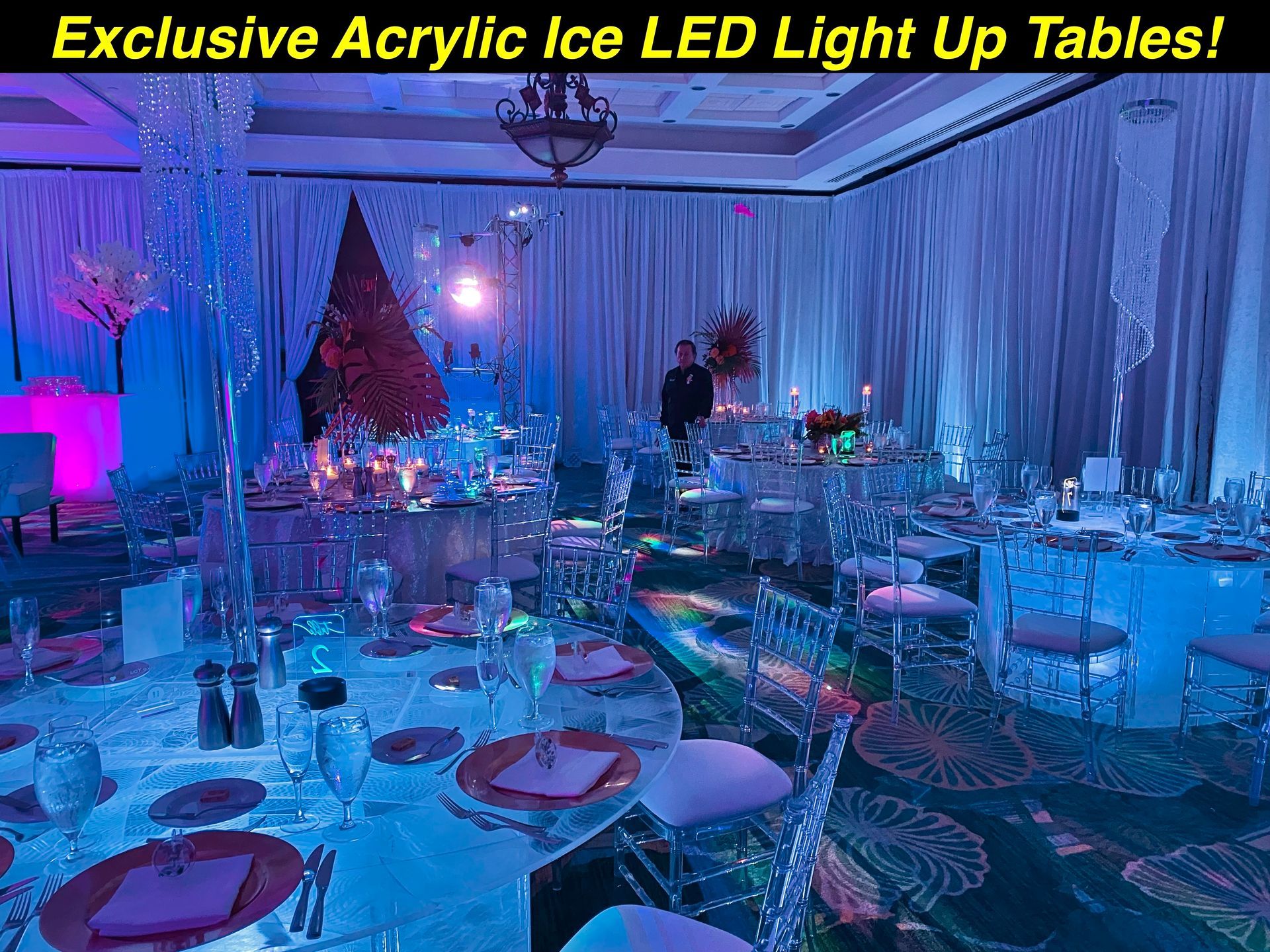 Our Elegant Hand Made Acrylic Ice Lighted Table RentalsMiami.