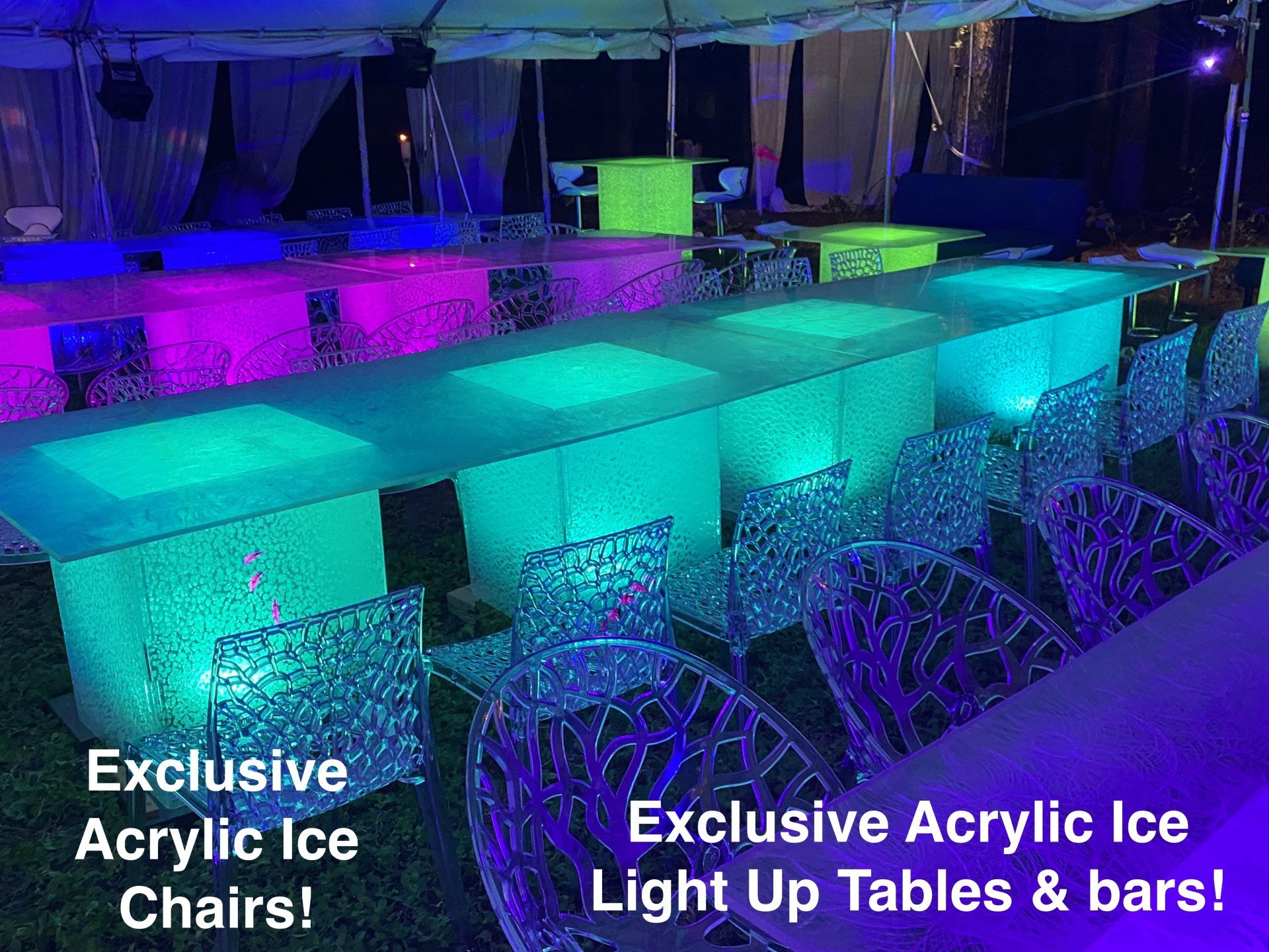 Our Elegant Acrylic Ice Light Up Table Rentals Miami.