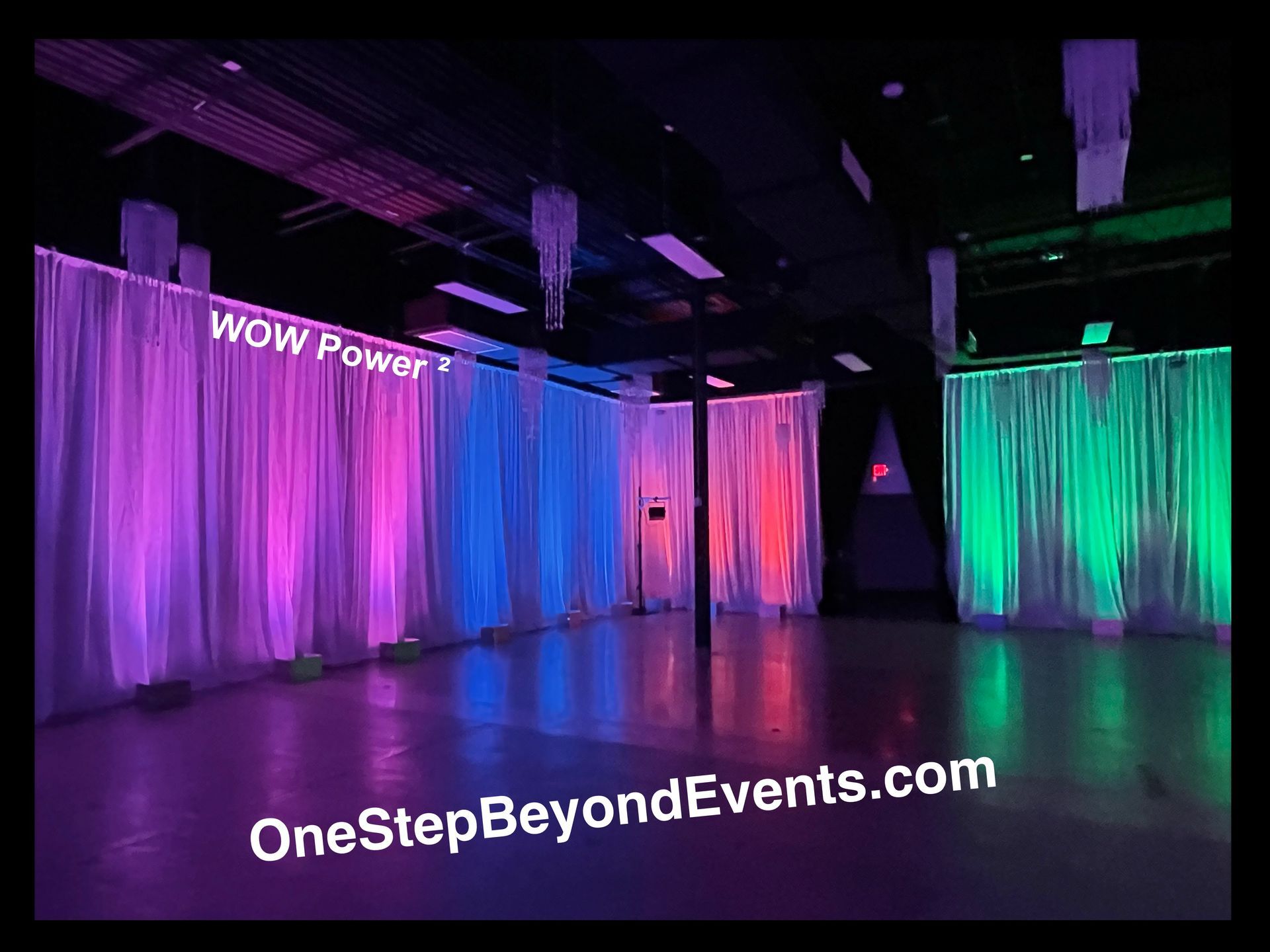 GLOW UP Lighting fully illuminates Draping with any COLOR!Our Outdoor